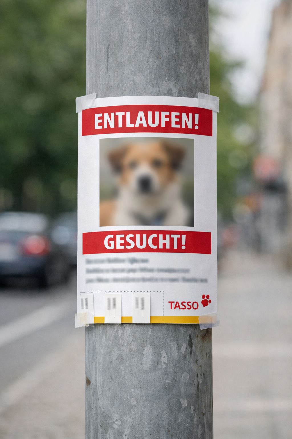 Fertigen Sie Flyer an mit einem möglichst aktuellen Foto Ihres Tieres, Ihrer Rufnummer und der Ortsangabe, wo der Hund entlaufen ist.